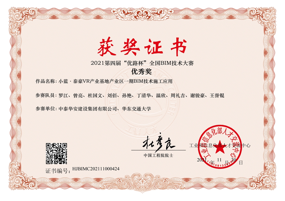 >2021第四届“优路杯”全国BIM技术大赛优秀奖-小蓝.泰豪VR产业基地