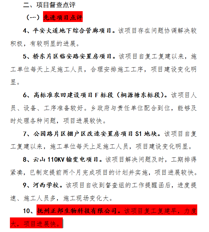 我司承建的抚州正邦生物科技有限公司24万吨饲料食品项目,在长达一个月的关于在建省市重点重大项目复工复建情况的督查考核中,表现良好,得到了抚州市临川区人民政府办公室的高度赞赏,被评为先进项目!